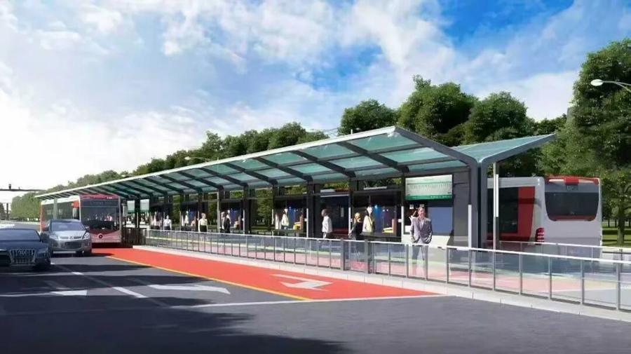 该工程是北部东西向重要的公交骨干通道,全长约16.6公里,西起中山公园地铁站,东至周家嘴路军工路站,沿长宁路、海宁路、周家嘴路等主干道铺设,设20对中途站及2处首末站,串联长宁、普陀、静安、虹口、杨浦五区核心地段。